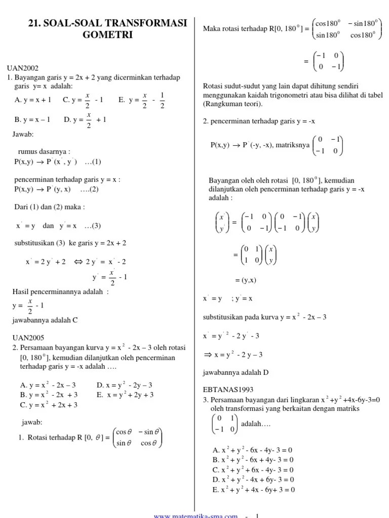 Mari kita temukan jawabannya dalam contoh soal berikut. Persamaan garis karena refleksi terhadap garis y x dilanjutkan oleh . Contoh soal sederhana menggunakan rumus pencerminan terhadap sumbu x: Contoh soal dan pembahasan tentang pencerminan terhadap sumbu x sumbu y. Sehingga 1 0 0 − 1 adalah matriks penceminan terhadap sumbu x 9;